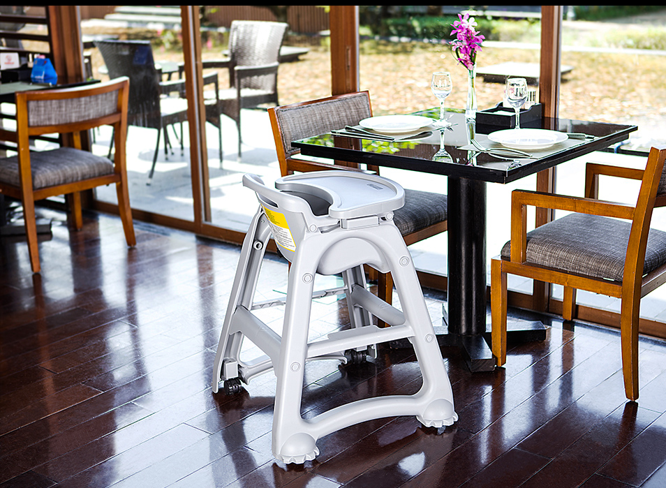 每一張餐椅的設(shè)計(jì)都充分考慮了椅子的承重強(qiáng)度和穩(wěn)定性。 配套的餐盤使用方便,一只手便可取下,并有兩種顏色可供選擇。 餐椅可疊放,減少占用的存放空間。